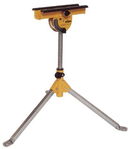 A versatile multipurpose support stand with extra-wide tripod base for excellent stability on level or uneven ground. The low-friction slide surfaces provide smooth, controlled travel without unwanted "steering" of the workpiece. They ensure your work only moves when you want it to. Swivelling and tilting head clamps pieces of wood to give many applications in the workshop, at home and on-site. Height adjusts from 25" to 37" and folds for easy transport and storage. Supports over 220 lbs.