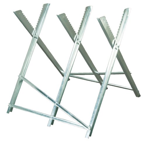 Makes cutting logs a breeze; Easy assembly; Max weight 150lbs; Has teeth for holding log; Sturdy steel construction
